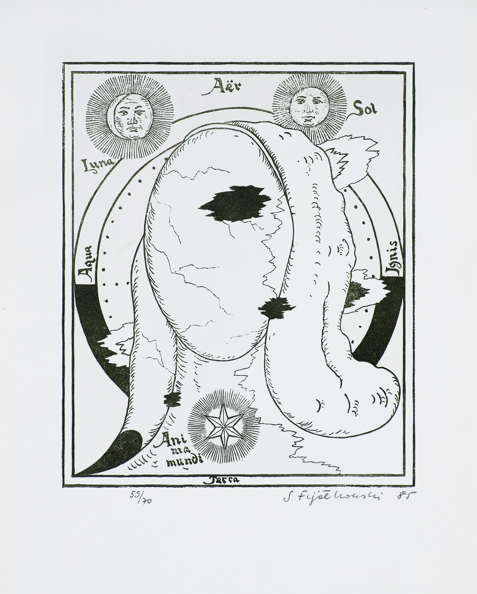 Stanisław Fijałkowski (Zdołbunow na Wołyniu 1922 - Łódź 2020) w latach 1944-1945 przebywał na robotach przymusowych w Królewcu. W latach 1946- 1951 studiował w Państwowej Wyższej Szkole Sztuk Plastycznych w Łodzi pod kierunkiem Władysława Strzemińskiego, Stefana Wegnera i Ludwika Tyrowicza, u którego uzyskał dyplom. W latach 1947-1993 był pedagogiem w macierzystej uczelni, od 1983 profesorem. Pełnił funkcje prorektora i dziekana Wydziału Grafiki. Wykładał też za granicą: w Mons (1978, 1982), Giessen (1989-1990), Marburgu (1990). Jest wiceprezydentem Międzynarodowego Stowarzyszenia Drzeworytników XYLON w Szwajcarii i przewodniczącym Polskiej Sekcji tej organizacji. Należy do zagranicznych Akademii nauk i sztuk w Salzburgu i Brukseli. Jest laureatem Nagrody Krytyki Artystycznej im. Cypriana Norwida 1971, Nagrody im. Jana Cybisa 1990 i wielu innych wyróżnień. Jako pierwszy w Polsce przetłumaczył teksty Wasyla Kandinskiego („Punkt i linia a płaszczyzna” i „O duchowości w sztuce”), oba wydane drukiem, oraz Kazimierza Malewicza „Świat bezprzedmiotowy”. Malarstwo Fijałkowskiego bazuje na skromnym zasobie abstrakcyjnych znaków i ograniczonej gamie barwnej. Kompozycje, w większości sugerujące ujęcia pejzażowe czy szerzej – przestrzenne, budowane są jakby pojedynczymi dotknięciami pędzla. Każdy szczegół nabiera ważności, śledzi się każdy niuans barwy czy faktury. Charakterystyczne kształty i motywy powtarzają się w różnych konfiguracjach w pracach artysty niczym wyrazy, z których układa za każdym razem inną opowieść. Obrazy noszą zazwyczaj poetyckie tytuły, często wpadające w tony groteskowe czy surealistyczne. Cechy te składają się na niezwykłe, intrygujące, autonomiczne zjawisko artystyczne. Malarstwu Fijałkowskiego od początku lat 60. towarzyszy czarno-biała grafika, głównie linoryt i drzeworyt, sporadycznie litografia.