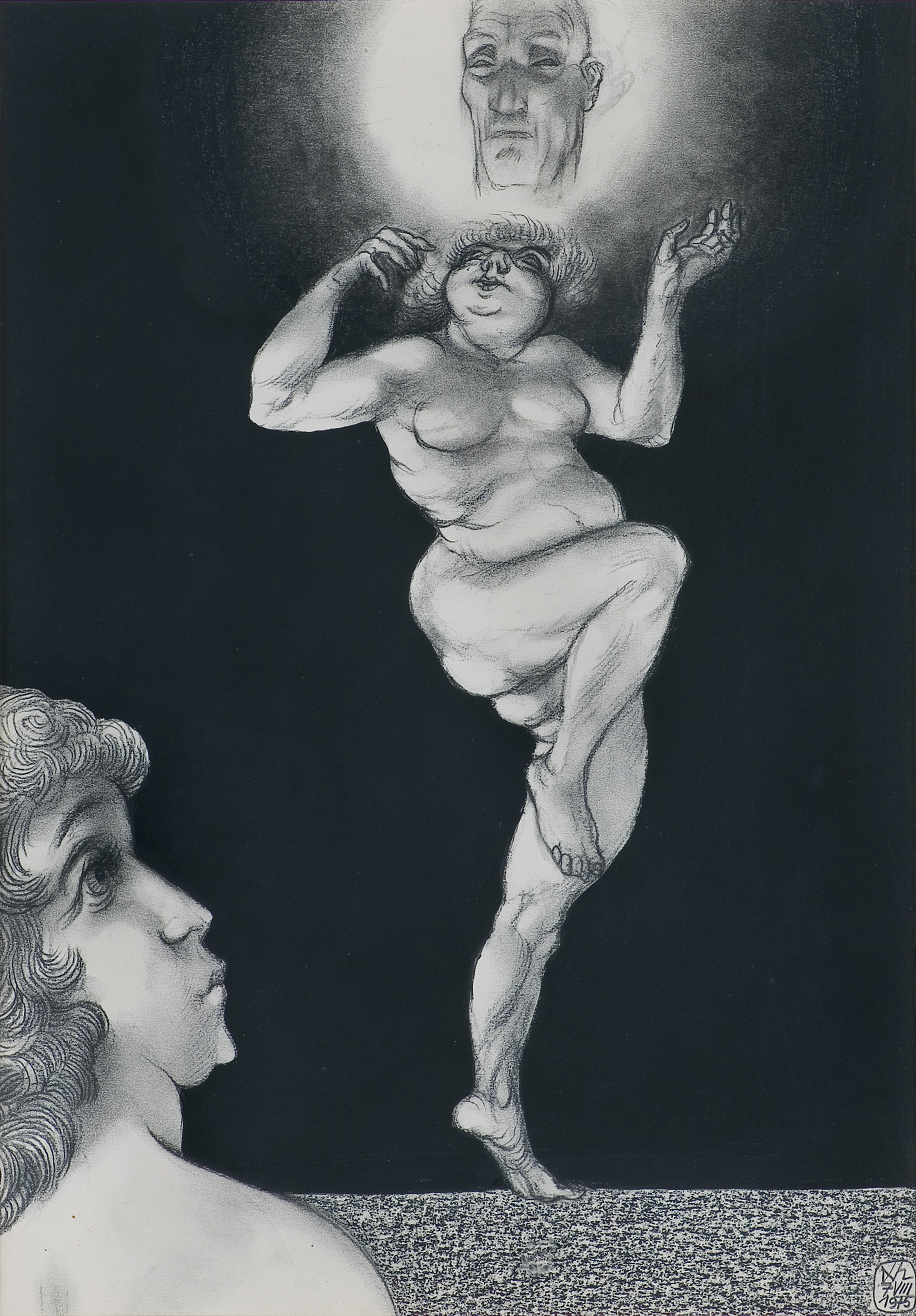Adam Hoffmann (Kraków 1918 - Kraków 2001) zaczął naukę w 1938 w prywatnej szkole malarstwa A.Terleckiego w Krakowie. Kontynuował studia w latach 1940-42 w krakowskiej Kunstgewerbeschule (będącej zakonspirowaną przedwojenną Akademią). W latach okupacji nawiązał kontakty z gronem artystów skupionych wokół Tadeusza Kantora, późniejszych członków Grupy Młodych Plastyków i od 1957 Grupy Krakowskiej (do której jednak nie przystąpił). W latach 1945-48 dopełnił studiów na Wydziale Malarstwa ASP w Krakowie pod kierunkiem Eugeniusza Eibischa, uczył się też grafiki u Konrada Srzednickiego. Od 1949 był pedagogiem w liceach plastycznych w Katowicach i Krakowie. Od 1950 był związany z Wydziałem Grafiki – filią krakowskiej ASP w Katowicach. W 1974 przeniósł się do ASP w Krako-wie, gdzie prowadził pracownię rysunku na Wydziale Grafiki do emerytury w 1978. Uczył m.in. póź-niejszych członków grupy „Wprost”, z którymi utrzymywał kontakty i powinowactwo artystyczne w późniejszych latach, będąc przez nich traktowany jako nestor i autorytet, również moralny. Choć zajmował się malarstwem sztalugowym, w sposób najbardziej charakterystyczny wypowiedział się w rysunkach pastelem, węglem i tuszem, o kolorystyce ograniczonej lub wręcz monochromatycznych. W realistycznym, nieco karykaturalnym stylu przedstawiał międzyludzkie konflikty, uczucia i sytuacje z pozoru codzienne, nasycone jednak refleksją o charakterze szerszym, egzystencjalnym. Zajmował się również grafiką użytkową i ilustracją, jest autorem publikacji z zakresu nauczania w szkolnictwie artystycznym.