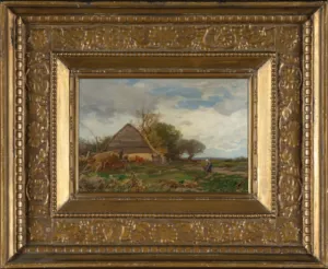 Roman Kochanowski (Kraków 1857 - Freising k. Monachium 1945) - malarz i grafik - był jednym z polskich artystów osiadłych i stałe działających w Monachium. Studia malarskie rozpoczął w Krakowie; początkowo w prywatnej pracowni Maksymiliana Cercha, a w latach 1873- 1875 w Szkole Sztuk Pięknych u Władysława Łuszczkiewicza i pejzażysty Henryka Grabińskiego. Przez następne dwa lata uczył się jeszcze na wydziale pejzażu w Akademii wiedeńskiej. W 1881 przeniósł się do Monachium, gdzie miał własną pracownię, a niebawem założył rodzinę. Często jednak przyjeżdżał do Krakowa, bywał w Poznańskiem, odbył podróż po Galicji i Podolu, rysując krajobrazy i widoki miast, które weszły następnie do albumu wydanego w Wiedniu w roku 1898. Artysta należał do monachijskiego Kunstvereinu, brał udział w wielu wystawach w Niemczech, w Wiedniu, w Londynie; swoje prace przesyłał też na pokazy krajowe. Malował przede wszystkim pejzaże a tylko z rzadka kwiaty i portrety. Stałym i ulubionym motywem jego obrazów był polski, podkrakowski krajobraz z wplecionymi weń postaciami ludzi. Obrazy artysty, malowane często na niewielkich deseczkach, pozbawione warstwy anegdotycznej odznaczają się niecodziennymi walorami malarskimi, harmonią koloru i pełnym liryzmu nastrojem. Zauważane i nagradzane na licznych wystawach były też wysoko cenione na rynku sztuki. W roku 1892, po wystawie w Wiedniu, jeden z obrazów Kochanowskiego zakupił do swoich zbiorów cesarz Franciszek Józef; dwa inne nabyli członkowie cesarskiej rodziny. Wielbicielem jego malarstwa był Karol Józef Luitpold, książę regent Bawarii. Wielka wrażliwość artysty na krajobraz i przyrodę widoczna jest także w jego rysunkach i akwafortach.
