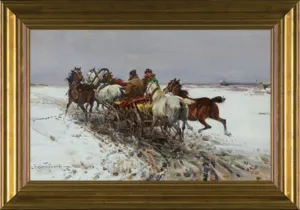 Czesław Wasilewski (ok. 1875 - Warszawa/ Łódź 1946?47) to popularny w okresie międzywojennym warszawski malarz, autor obrazów inspirowanych płótnami Kossaka, Brandta, Chełmońskiego, Wierusza-Kowalskiego czy Fałata. Był samoukiem; wprawdzie w 1911 zapisał się do warszawskiej Szkoły Sztuk Pięknych, ale o jego studiach nic bliższego nie wiadomo. Być może uczęszczał tam (1913-1917) do pracowni Wojciecha Kossaka, dla którego później, na początku lat dwudziestych, przygotowywał podmalówki do obrazów. Uczestniczył w wystawie w Lublinie (1922), wystawiał na Salonach warszawskiej Zachęty (1925,1926, 1927), w Katowicach (1926), Częstochowie (1927), Gdyni (1929), Kaliszu (1931), Poznaniu (1928, 1931). Malował przede wszystkim liczne zaprzęgi, sanny, wyjazdy na polowania, wypadki w podróży, ułanów na patrolu, łosie, sarny i dziki w lesie. Tworzył także nastrojowe pejzaże, wyraźnie inspirowane malarstwem J. Chełmońskiego Rzadziej malował także kwiaty i martwe natury. Utożsamiany z malarzem o nazwisku „Zygmuntowicz”, którego prace pojawiały się na rynku sztuki od trzydziestych lat XX wieku. Stawiany przed tym nazwiskiem inicjał I. lub F., sugerować może imię Ignacy lub Franciszek. Sylwetkę malarza bliżej omówił S. Bołdok w artykule Malarz o dwóch nazwiskach (Art and Business 1992, nr 7-8, s. 48-49).
