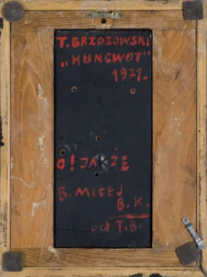 Tadeusz Brzozowski (Lwów 1918 - Rzym 1987) - od 1936 studiował malarstwo w Akademii Sztuk Pięknych w Krakowie, w latach 1940-1942 kontynuując naukę w Kunstgewerbeschule, powstałej w miejsce Akademii. W czasie okupacji związany był z Teatrem Podziemnym Tadeusza Kantora - grał w Balladynie (1943) i główną rolę w Powrocie Odysa (1944). W tym okresie zajmował się też konserwacją dzieł sztuki, co okazało się owocne dla jego własnej techniki malarskiej w przyszłości. W 1945 ostatecznie ukończył studia w krakowskiej ASP. Do 1948 wystawiał z Grupą Młodych Plastyków, uczestnicząc w najważniejszych wystawach młodego ruchu artystycznego, aż do narzucenia przez władze socrealizmu jako obowiązującego stylu obrazowania. W latach 1950-1955 nie uczestniczył w oficjalnym życiu artystycznym, zajmując się w tym czasie malowaniem polichromii kościelnych, konserwacją i nauczaniem rysunku na Wydziale Architektury Politechniki Krakowskiej (do 1954). W 1954 przeniósł się do Zakopanego, gdzie podjął pracę pedagogiczną w Szkole Kenara. Pracował w niej do 1969, w latach 1959-1961 jako dyrektor w Zakopanem mieszkał do końca życia. W tym okresie, w toku samodzielnych prób i doświadczeń stał się wirtuozem techniki malarskiej. Kolor, faktura, gra laserunków i walorów, cała „alchemia“ jaką stosował w swoich obrazach złożyły się na niepowtarzalne zjawisko malarstwa abstrakcyjnego, które zdolne było „opowiadać“ samą swą formą. W 1955 powrócił do udziału w wystawach, uczestnicząc w licznych pokazach w Polsce i za granicą, organizując też wiele wystaw indywidualnych. W 1957 wszedł w skład reaktywowanej Grupy Krakowskiej. Od 1958 współorganizował „Salony Marcowe“ w Zakopanem. W 1959 w Paryżu związał się z międzynarodowym ruchem „Phases“. W latach 1962-1979 był pedagogiem w Państwowej Wyższej Szkole Sztuk Plastycznych w Poznaniu (od 1977 profesorem), a w latach 1979-1981 profesorem ASP w Krakowie. Otrzymał wiele nagród i odznaczeń państwowych oraz m. in. nagrodę Fundacji im. Alfreda Jurzykowskiego (1983). Wśród retrospektyw artysty za jego życia wymienić należy wystawę w Muzeum Narodowym w Poznaniu (1974) i wystawę rysunków w Muzeum Okręgowym w Radomiu (1986). Wielka wystawa pośmiertna eksponowana była w Muzum Narodowym w Warszawie, a następnie w muzeach w Zakopanem, Wrocławiu i Krakowie w latach 1997-1998. Towarzyszył jej katalog oeuvre artysty w dziedzinie malarstwa i rysunku: Tadeusz Brzozowski 1918-1987, pod red. Anny Żakiewicz, Muzeum Narodowe, Warszawa 1997.