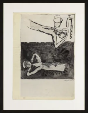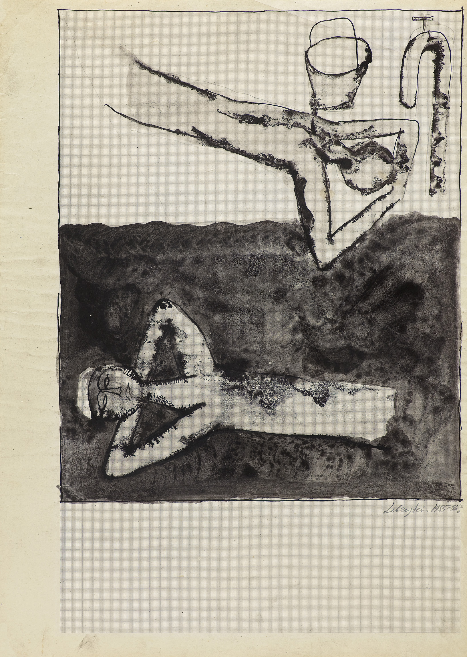 Jan Lebenstein (Brześć Litewski 1930 - Kraków 1999) w latach 1948-1954 studiował malarstwo w ASP w Warszawie pod kierunkiem prof. Eugeniusza Eibischa i Artura Nachta-Samborskiego. W 1955 wziął udział w wystawie w warszawskim Arsenale. Zaprzyjaźniony w czasie studiów z Mironem Białoszewskim, swą pierwszą wystawę indywidualną pokazał w 1956 w Teatrze na Tarczyńskiej. W 1959 zdobył Grand Prix de la Ville de Paris na I Biennale Młodych w Paryżu i w tym roku przeniósł się na stałe do Paryża. Po seriach "figur kreślonych" (na papierze milimetrowym) i "figur hieratycznych" z lat 1955-1958 maluje cykl "figur osiowych" (1958-1962), które wystawia w Paryżu i USA. Równolegle w 1960 zaczyna rysowane "karnety", rodzaj dziennika, który w przyszłości dostarczy motywów wykorzystanych w obrazach. W latach 1964-1965 maluje "Bestiarium", cykl fakturowych, archaizowanych stworów przypominających prehistoryczne wykopaliska. Bezpośrednio po nich wprowadza do swych obrazów postaci ludzkie i fantastyczne, odgrywające sceny ni to mitologiczne, ni to ze snu, często przesycone erotyką. W 1970 projektuje witraże dla Centre du Dialogue w Paryżu. W W 1971 otrzymuje obywatelstwo francuskie 1974 powstają gwasze inspirowane Folwarkiem zwierzęcym George'a Orwella. W latach 1976-1989 tworzy wyłącznie w technice gwaszu i pastelu, podejmując tematykę mitologiczną i zaczerpniętą z Biblii: cykle ilustracji do Księgi Hioba (wyd. 1979) i do Apokalipsy (wyd. 1986) w nowych przekładach Czesława Miłosza. W 1989 powraca do malarstwa olejnego (cykl "Pergamon"). Artysta otrzymał m. in. nagrodę Fundacji im. Alfreda Jurzykowskiego w 1976, Nagrodę Muzeum Archidiecezji Warszawskiej w 1985, Nagrodę im. Jana Cybisa w 1987.