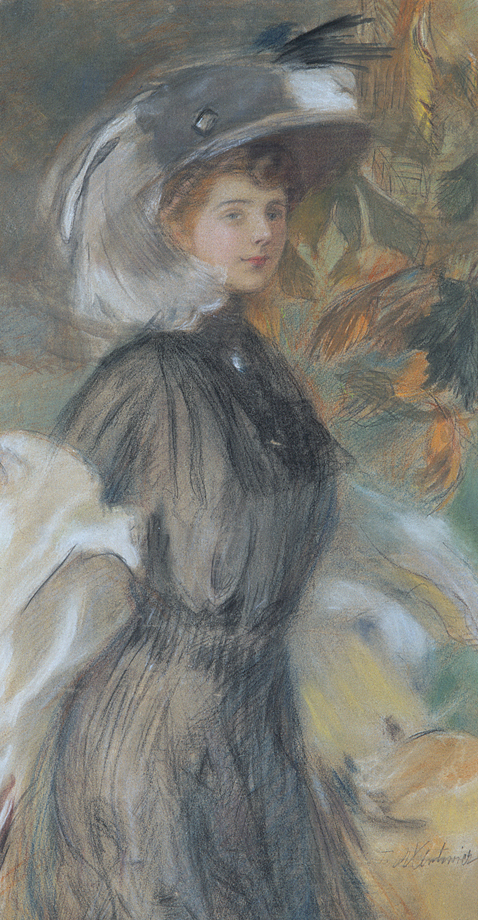 Teodor Axentowicz (Braszów w Siedmiogrodzie 1859 - Kraków 1938) – malarz, pastelista, litograf – był jednym z najbardziej znanych i cenionych malarzy polskich. Kształcił się w Akademii Sztuk Pięknych w Monachium pod kierunkiem Gabriela Hackla, Aleksandra Wagnera, Gyuli Benczúra. Studia uzupełniał w Paryżu, gdzie następnie przebywał przez lat kilkanaście. Brał udział w paryskich Salonach; w 1890 otrzymał członkostwo Société Nationale des Beaux-Arts. W tym czasie wielokrotnie wyjeżdżał również do Londynu. W 1895 powrócił do kraju i zamieszkał na stałe w Krakowie, powołany na profesora tamtejszej Szkoły Sztuk Pięknych (od 1900 Akademii). W uczelni tej nauczał nieprzerwanie do 1934, dwukrotnie pełniąc funkcję rektora (lata 1910-11 oraz 1927-28). Był jednym z członków-założycieli Towarzystwa Artystów Polskich „Sztuka”, członkiem wiedeńskiej „Secesji” i współpracownikiem jej pisma „Ver Sacrum”. Powodzenie przyniosły mu zwłaszcza idealizowane wizerunki wytwornych dam oraz wdzięczne portrety dziecięce. Malował też obrazy o tematyce rodzajowej; był jednym z pierwszych malarzy Huculszczyzny i Hucułów. Tworzył obrazy historyczne i kompozycje symboliczne związane z upływem czasu, przemijaniem, starością. We wczesnym, monachijskim okresie były to obrazy utrzymane w duchu akademickiego realizmu; na późniejszą twórczość artysty wywarło wpływ angielskie malarstwo XVIII w. oraz dzieła malarzy współczesnych - Boldoniego, Whistlera, Sargenta. Jego obrazy cechuje dekoracyjność, elegancja, świeżość subtelnej gamy kolorów i delikatna secesyjna stylizacja. Początkowo malował olejno i akwarelą, a po 1890 przede wszystkim mistrzowsko opanowaną techniką pastelu. Zajmował się ilustratorstwem i litografią, projektował plakaty wystaw „Sztuki”.