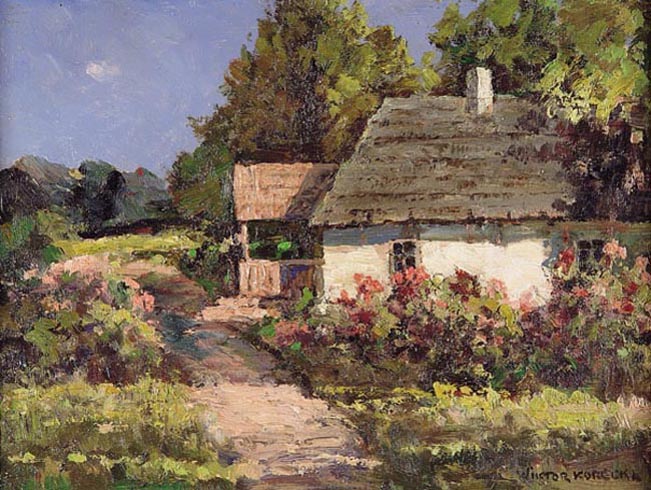 Wiktor Korecki (Kamieniec Podolski 1890 - Komorów k. Warszawy 1980) - malarz pejzażysta - gimnazjum ukończył w Kijowie, tam też studiował w Szkole Rysunkowej Aleksandra Muraszki. Po studiach wrócił do Kamieńca Podolskiego, skąd w roku 1921 wyjechał do Warszawy. Tu miał pracownię na rogu ulic Tamki i Cichej. Niestety zgromadzone tam obrazy spłonęły w czasie powstania 1944 roku. Po powstaniu artysta przebywał w obozie w Pruszkowie skąd trafił do obozu pracy w Lipsku. Do kraju powrócił w roku 1946 i zamieszkał w Komorowie pod Warszawą, a później w Milanówku. Jego nastrojowe krajobrazy emanujące spokojem i pogodą cieszyły się zawsze dużą popularnością. Korecki najczęściej malował pejzaże zimowe z motywem leśnej drogi i strumienia wijącego się wśród śniegów, a obok nich także wiosenne, letnie czy jesienne widoki z Mazowsza.