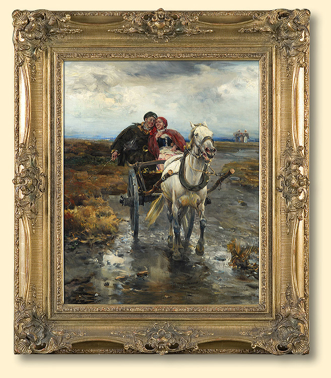 Alfred Wierusz-Kowalski (Suwałki 1849 – Monachium 1915) - jeden z najwybitniejszych polskich malarzy tzw. szkoły monachijskiej był, obok Józefa Brandta i Władysława Czachórskiego, także najpopularniejszym z polskich artystów osiadłych i stale działających w Monachium. Zamieszkał tam w roku 1873, już po studiach w Warszawie i w Dreźnie. Przez rok uczył się jeszcze w monachijskiej Akademii Sztuk Pięknych pod kierunkiem Alexandra Wagnera, a następnie przeniósł się do prywatnej pracowni Brandta. Uznanie krytyki i publiczności zdobył wcześnie; jego obrazy, odznaczane medalami na wystawach były rozchwytywane przez kolekcjonerów i niemieckich handlarzy. W roku 1890 został honorowym profesorem Akademii monachijskiej. Malował sceny rodzajowe i rodzajowo-historyczne z motywami jeźdźców, rycerzy, myśliwych, koni, wilków i śniegów. Po podróży do Afryki w roku 1903 podejmował też tematy orientalne. W polskich zbiorach muzealnych znalazło się stosunkowo niewiele prac artysty – jego obrazy sprzedawane głównie na rynku niemieckim w większej liczbie trafiały do kolekcji prywatnych, głównie w Niemczech i Stanach Zjednoczonych. Obecne często pojawiają się i na polskim rynku sztuki, zawsze budząc zainteresowanie kolekcjonerów.