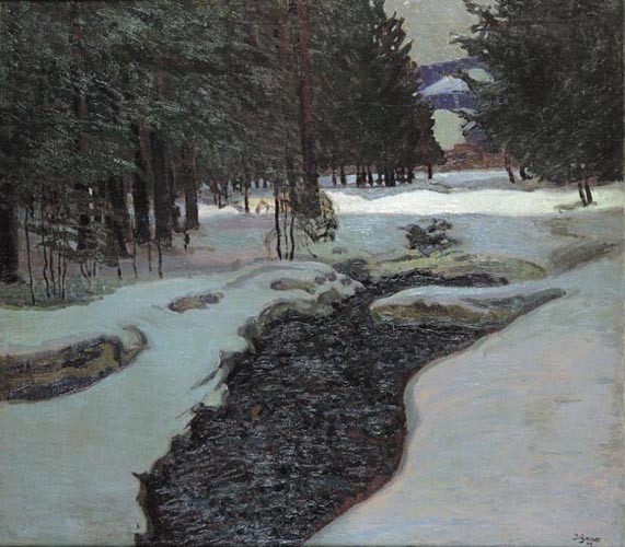 Zimowy las z potokiem