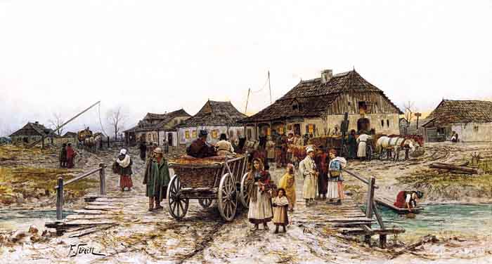 Franciszek Streitt (Brody 1839 - Monachium 1890) w latach 1856-1866 studiował w krakowskiej Szkole Sztuk Pięknych u Władysława Łuszczkiewicza i Jana Matejki, a następnie w Akademii wiedeńskiej u Eduarda Engertha. W roku 1871 osiadł na stałe w Monachium, dzieląc pracownię z przyjacielem, malarzem Antonim Kozakiewiczem. Z Monachium wyjeżdżał do Krakowa i na Węgry. We wcześniejszym okresie - jak przystało na ucznia Matejki - malował kompozycje historyczne, ale o zabarwieniu rodzajowym (Pożegnanie syna wyruszającego na wyprawę wiedeńską). Później, już w Monachium malował portrety i pejzaże oraz - przede wszystkim - rodzajowe sceny z małych polskich miasteczek czy wsi - jarmarki, wędrownych muzykantów, obozowiska Cyganów. Chętnie malował też nieco sentymentalne scenki z dziecięcymi bohaterami. W jego pracach dużą rolę odgrywała anegdota, dopowiedziana jeszcze opisowym, literackim tytułem; Zakazany owoc, Pociecha matuli, Bez jutra czy Ostatnia krówka. Obrazy artysty „pokazujące z największa wiernością życie ludu polskiego /../, znalazły jak najżywsze uznanie” i cieszyły się znacznym powodzeniem, a wiele z nich trafiało na angielski bądź amerykański rynek sztuki.