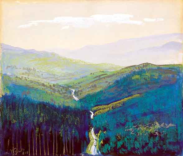 Leon Wyczółkowski (Huta Miastkowska k. Siedlec 1852 - Warszawa 1936) - malarz, grafik i pedagog, był jednym z najwybitniejszych artystów polskich tworzących na przełomie XIX i XX w. Studia artystyczne rozpoczął w warszawskiej Klasie Rysunkowej pod kierunkiem Wojciecha Gersona i Aleksandra Kamińskiego (1869-1873), następnie kontynuował je w monachijskiej Akademii Sztuk Pięknych u Aleksandra Wagnera (1875-1877), w Krakowie u Jana Matejki (1877/78) i podczas dwukrotnych wyjazdów do Paryża (1878 i 1889). Po studiach zamieszkał we Lwowie, później przeniósł się do Warszawy. Lata 1883-1893 spędził podróżując po Ukrainie i Podolu. W 1895 przeniósł się do Krakowa powołany na wykładowcę tamtejszej Szkoły Sztuk Pięknych. W latach następnych wiele podróżował – do Włoch, Francji, Hiszpanii, Holandii, Anglii. Należał do grona członków-założycieli Towarzystwa Artystów Polskich „Sztuka”. Wiele wystawiał tak w kraju, jak i za granicą. Lata 1929-1936 spędził w Poznaniu i Gościeradzu, dojeżdżając do Warszawy, gdzie (od 1934) prowadził katedrę grafiki w Akademii Sztuk Pięknych. Malował krajobrazy, portrety, sceny rodzajowe, martwe natury i kwiaty. Chętnie posługiwał się techniką pastelu i akwareli, był wybitnym grafikiem, zajmował się też rzeźbą.