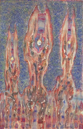 Jerzy Tchórzewski w czasie wojny walczył w AK. Studiował w ASP w Krakowie w latach 1946-1951. W czasie studiów związał się z kręgiem Grupy Krakowskiej. Debiutował na I Wystawie Sztuki Nowoczesnej w Krakowie w 1948, w 1955 uczestniczył w wystawie w warszawskim Arsenale, gdzie zdobył nagrodę. W tym czasie mieszkał już w Warszawie, gdzie w 1954 podjął pracę pedagogiczną w ASP (przeszedł na emeryturę w 1998). Już od wczesnego, figuratywnego okresu twórczości (1948-1955), kiedy umieszczał postaci i fantastyczne stwory w wyimaginowanych pejzażach, odznaczał się zainteresowaniami i typem wyobraźni bliskiej surrealizmowi. W drugiej połowie 50. zaczął malować abstrakcyjne obrazy nasuwające na myśl kosmiczne kataklizmy i erupcje materii, rozjaśniane poszarpanymi liniami błyskawic kontrastujących z ciemnym tłem. Niekiedy w jego kompozycjach pojawiały się kształty ludzkie i zwierzęce. Zbieżność surrealizujących wizji Tchórzewskiego z równoległymi tendencjami malarstwa informel sprawiła, że w 1959 stowarzyszył się z międzynarodowym ruchem artystycznym Phases. W późniejszych latach artysta komplikował fakturę obrazów, wykorzystując m.in. właściwości schnięcia grubej warstwy farby, a w przypadku gwaszy - efekty zmiętego papieru. Od końca lat 70. podejmował chętnie tematykę religijną. Apogeum tego nurtu przypadło na lata 80., kiedy artysta związał się z niezależnym ruchem artystycznym, wystawiając często w kościołach i na pokazach prywatnych. W 1986 otrzymał niezależną Nagrodę im. Jana Cybisa.