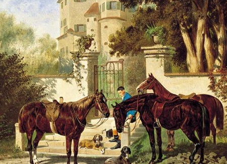 Masztalerz z końmi przed pałacem