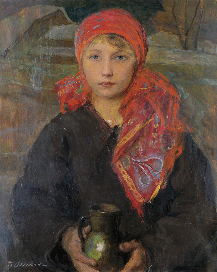 Teodor Axentowicz (Braszów w Siedmiogrodzie 1859 - Kraków 1938) – malarz, pastelista, litograf – był jednym z najbardziej znanych i cenionych malarzy polskich. Kształcił się w Akademii Sztuk Pięknych w Monachium pod kierunkiem Gabriela Hackla, Aleksandra Wagnera, Gyuli Benczúra. Studia uzupełniał w Paryżu, gdzie następnie przebywał przez lat kilkanaście. Brał udział w paryskich Salonach; w 1890 otrzymał członkostwo Société Nationale des Beaux-Arts. W tym czasie wielokrotnie wyjeżdżał również do Londynu. W 1895 powrócił do kraju i zamieszkał na stałe w Krakowie, powołany na profesora tamtejszej Szkoły Sztuk Pięknych (od 1900 Akademii). W uczelni tej nauczał nieprzerwanie do 1934, dwukrotnie pełniąc funkcję rektora (lata 1910-11 oraz 1927-28). Był jednym z członków-założycieli Towarzystwa Artystów Polskich „Sztuka”, członkiem wiedeńskiej „Secesji” i współpracownikiem jej pisma „Ver Sacrum”. Powodzenie przyniosły mu zwłaszcza idealizowane wizerunki wytwornych dam oraz wdzięczne portrety dziecięce. Malował też obrazy o tematyce rodzajowej; był jednym z pierwszych malarzy Huculszczyzny i Hucułów. Tworzył obrazy historyczne i kompozycje symboliczne związane z upływem czasu, przemijaniem, starością. We wczesnym, monachijskim okresie były to obrazy utrzymane w duchu akademickiego realizmu; na późniejszą twórczość artysty wywarło wpływ angielskie malarstwo XVIII w. oraz dzieła malarzy współczesnych - Boldoniego, Whistlera, Sargenta. Jego obrazy cechuje dekoracyjność, elegancja, świeżość subtelnej gamy kolorów i delikatna secesyjna stylizacja. Początkowo malował olejno i akwarelą, a po 1890 przede wszystkim mistrzowsko opanowaną techniką pastelu. Zajmował się ilustratorstwem i litografią, projektował plakaty wystaw „Sztuki”.