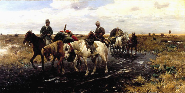 Michał Gorstkin Wywiórski (Warszawa 1861 - Berlin 1926) w latach 1883-1887 studiował w Monachium; w Akademii u profesorów Karla Raupa i Nikolausa Gysisa oraz równolegle w prywatnych pracowniach Józefa Brandta i Alfreda Wierusza-Kowalskiego. W 1884 debiutował na wystawie w krakowskim TPSP, swoje prace pokazywał też w Monachium, gdzie w 1894 na międzynarodowej wystawie w Glaspalast został wyróżniony medalem za obraz Z puszczy litewskiej. W 1895 przeniósł się do Berlina, zaproszony przez Wojciecha Kossaka i Juliana Fałata do pracy przy panoramie Berezyna (1895-1896). W Berlinie zamieszkał na dłużej, a następnie przebywał w Wielkopolsce i w Warszawie. Współpracował też z Janem Styką przy panoramie Bitwa pod Sybinem (1897), a w 1900 wspólnie z Kossakiem podróżował do Hiszpanii i Egiptu, aby wykonać szkice plenerowe do zamierzonych panoram Somosierra (nie zrealizowana) i Bitwa pod piramidami (1901). Wyjeżdżał także na Litwę, wyspę Sylt, do Norwegii, Szwecji, nad Morze Północne i Bałtyk, malował w Amsterdamie, na Krymie i Kaukazie. We wczesnej fazie twórczości, pod silnym wpływem Brandta i Wierusza-Kowalskiego, malował sceny myśliwskie i rodzajowe oraz obrazy z Tatarami, Kozakami czy Czerkiesami, które przyniosły mu powodzenie na monachijskim rynku sztuki. Z czasem naczelnym tematem jego malarstwa stał się czysty pejzaż, postrzegany i malowany wrażliwie i z upodobaniem.