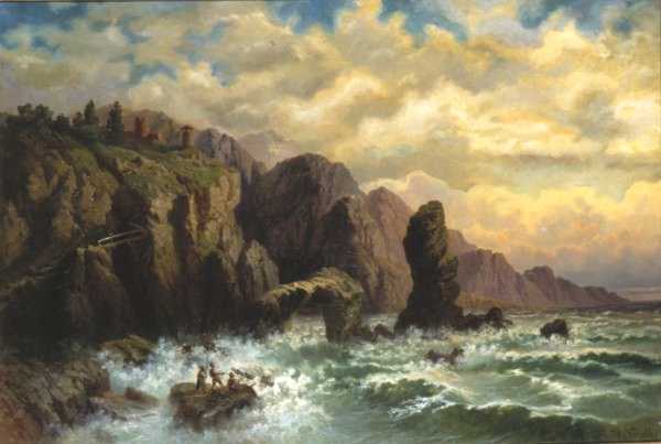 Waldemar Knoll – malarz niemiecki; w l.1846-49 studiował w berlińskiej Akademii Sztuk Pięknych, pod kierunkiem E.Biermanna i L.Zielkie’go. W czasie studiów podróżował do Tyrolu i Turyngii. W 1848 debiutował na wystawie w Akademii Widokiem na klasztor w Bozen. Następnie pracował jako malarz-dekorator w berlińskim teatrze. W 1863 – zawezwany przez Wielkiego Księcia Michała, naczelnego namiestnika Kaukazu – wyjechał do Tyflisu, gdzie pracował w teatrze cesarskim jako scenograf i główny dekorator. Namalował tam m.in. kurtynę i dekorację ścienną. Tworzył także liczne pejzaże z gór kaukaskich, w których szczególną uwagę przykładał do gry światła; np. chętnie malował specyficzne, nastrojowe światło przed nadciągającą burzą. W 1872 wrócił do Niemiec i osiadł w Dreźnie, gdzie został kierownikiem artystycznym dworskiego teatru. W 1878 przeniósł się do Frankfurtu n/Menem i pracował w tamtejszych teatrach miejskich. Od 1899 mieszkał w Coburgu. Chętnie podróżował po