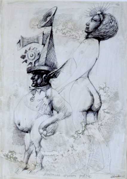 Jan Lebenstein (Brześć Litewski 1930 - Kraków 1999) w latach 1948-1954 studiował malarstwo w ASP w Warszawie pod kierunkiem prof. Eugeniusza Eibischa i Artura Nachta-Samborskiego. W 1955 wziął udział w wystawie w warszawskim Arsenale. Zaprzyjaźniony w czasie studiów z Mironem Białoszewskim, swą pierwszą wystawę indywidualną pokazał w 1956 w Teatrze na Tarczyńskiej. W 1959 zdobył Grand Prix de la Ville de Paris na I Biennale Młodych w Paryżu i w tym roku przeniósł się na stałe do Paryża. Po seriach "figur kreślonych" (na papierze milimetrowym) i "figur hieratycznych" z lat 1955-1958 maluje cykl "figur osiowych" (1958-1962), które wystawia w Paryżu i USA. Równolegle w 1960 zaczyna rysowane "karnety", rodzaj dziennika, który w przyszłości dostarczy motywów wykorzystanych w obrazach. W latach 1964-1965 maluje "Bestiarium", cykl fakturowych, archaizowanych stworów przypominających prehistoryczne wykopaliska. Bezpośrednio po nich wprowadza do swych obrazów postaci ludzkie i fantastyczne, odgrywające sceny ni to mitologiczne, ni to ze snu, często przesycone erotyką. W 1970 projektuje witraże dla Centre du Dialogue w Paryżu. W W 1971 otrzymuje obywatelstwo francuskie 1974 powstają gwasze inspirowane Folwarkiem zwierzęcym George'a Orwella. W latach 1976-1989 tworzy wyłącznie w technice gwaszu i pastelu, podejmując tematykę mitologiczną i zaczerpniętą z Biblii: cykle ilustracji do Księgi Hioba (wyd. 1979) i do Apokalipsy (wyd. 1986) w nowych przekładach Czesława Miłosza. W 1989 powraca do malarstwa olejnego (cykl "Pergamon"). Artysta otrzymał m. in. nagrodę Fundacji im. Alfreda Jurzykowskiego w 1976, Nagrodę Muzeum Archidiecezji Warszawskiej w 1985, Nagrodę im. Jana Cybisa w 1987.