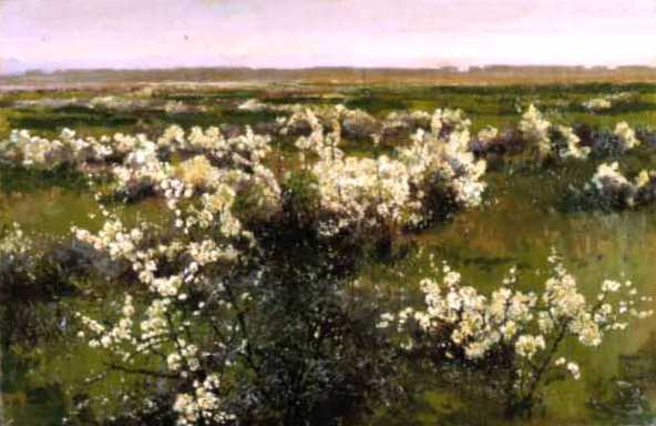 Rozkwitłe ciernie - pejzaż z krzakiem tarniny