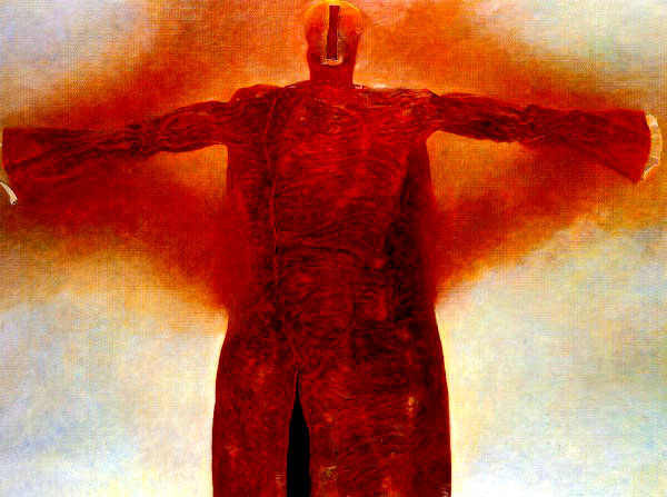 Zdzisław Beksiński (Sanok 24 II 1929 - Warszawa 21 II 2005) studiował w latach 1947-1952 na Wydziale Architektury Politechniki Krakowskiej. Był artystą samoukiem, który osiągnął niekwestionowaną pozycję w polskiej sztuce współczesnej, potwierdzoną obecnością jego prac na prestiżowych wystawach i w kolekcjach muzealnych. Początkowo zajmował się fotografią, którą interesował się od lat studenckich, po 1956 zyskując uznanie jako twórca fotogramów o estetyce opartej o efekty fakturowe. W latach 1958-1962 tworzył abstrakcyjne obrazy-reliefy o bogatej fakturze, głównie metalowe, będące odmianą malarstwa materii. Pod koniec tego okresu powstawały ażurowe formy o kształtach figur i pełnoplastyczne rzeźby w metalu. Kolejnym etapem jego twórczości były lata 1962-1974, kiedy poświęcał się głównie rysunkowi. W latach 60. rysował piórkiem i tuszem figuralne kompozycje odznaczające się karykaturalną deformacją postaci. Od końca lat 60. tworzył rysunki węglem i kredkami, będące monochromatyczną odmianą jego równoległej twórczości malarskiej. Od 1974 zajmował się niemal niepodzielnie malarstwem. Jego charakterystyczny styl bazował na perfekcji technicznej, której towarzyszyła niezwykłość wizji. Malował świat po katastrofie, naznaczony piętnem śmierci i rozpadu. Jego obrazy zaludniają postaci i stwory o ludzkich wprawdzie bądź zwierzęcych kształtach, lecz o cechach fantomów, automatów lub rozpadających się trucheł. Artysta nie nadawał swym obrazom i rysunkom tytułów (poza porządkującymi symbolami), akcentując w ten sposób swój brak zainteresowania dla literackiej strony przedstawień. Sam mówił, że malując całkowicie poddaje się wizji, „fotografuje“ ją. W ostatnich latach włączył do swego warsztatu artystycznego elektroniczne techniki generowania obrazu, które wykorzystywał do tworzenia komputerowych fotomontaży. Sztuka Beksińskiego, wielokrotnie wystawiana i omawiana, budzi skrajne emocje wśród znawców i publiczności.