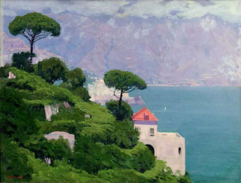 Edward Okuń (Wólka Zerzyńska /obecnie Zerzeńska/ k. Warszawy 1872 - Skierniewice 1945) – malarz, rysownik, ilustrator – studia artystyczne rozpoczął w warszawskiej Klasie Rysunkowej u Wojciecha Gersona. W latach 1891-1893 kształcił się w krakowskiej Szkole Sztuk Pięknych, m.in. u Jana Matejki, od 1893 w Monachium u Antona Ažbe, Stanisława Grocholskiego i Szymona Hollosy’ego. Studia uzupełniał w Paryżu. Od roku 1898 stale mieszkał we Włoszech – w Rzymie, a okresowo także w pobliskim Anticoli Corrado, we Florencji, Sorrento, Amalfi i na Capri. W 1914 podróżował do Egiptu. W roku 1921 wrócił do Warszawy, gdzie w latach 1925-1930 był profesorem Szkoły Sztuk Pięknych. Jeszcze kilkakrotnie wyjeżdżał do Włoch (m.in. w 1928, 1937, 1938), a w latach 1927 oraz 1929-1932 jeździł do Jugosławii, gdzie powstał cykl pejzaży Znad Adriatyku - "Jadran". Malował dekoracyjne, stylizowane portrety, idylliczne pejzaże i kompozycje o wątkach fantastycznych i baśniowych, bliskie symbolizmowi i secesji. Często sam projektował ramy do swoich obrazów, traktując je jako integralną część tych dzieł. Był wybitnym twórcą grafiki książkowej; wykonywał ilustracje, winiety, projekty okładek, inicjały i przerywniki, współpracując m.in. z warszawskim pismem „Chimera”.