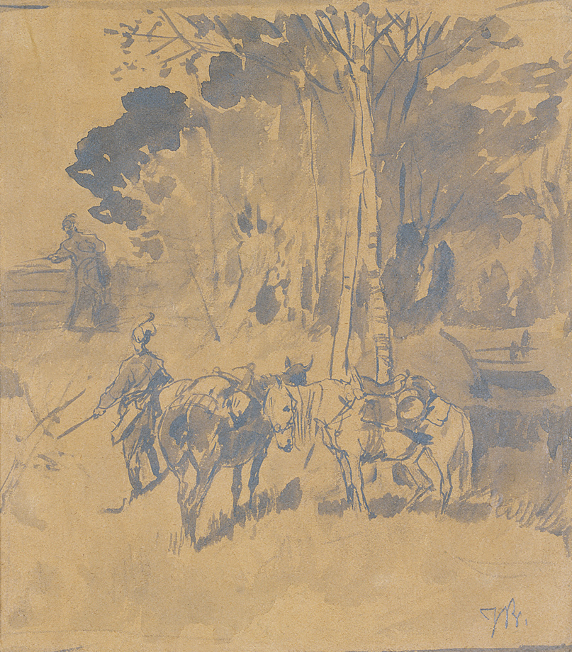 Józef Brandt (Szczebrzeszyn 1841 - Radom 1915) był jednym z najwybitniejszym polskich malarzy batalistów. Naukę malarstwa rozpoczął w Warszawie pod okiem Juliusza Kossaka. W latach 1858-1860 był w Paryżu, gdzie podjął studia inżynierskie. Niebawem zarzucił je jednak na rzecz malarstwa i kształcił się w pracowni Leona Cognieta. Po powrocie do kraju, w 1861 debiutował na wystawie w warszawskim TZSP. Od 1863 kontynuował studia w monachijskiej ASP u Franza Adama. W 1870 otworzył w Monachium własną pracownie i niebawem stał się przywódcą, „generałem” tamtejszej polskiej kolonii artystycznej i nauczycielem wielu malarzy. Po 1877 miesiące letnie spędzał w Orońsku, zapraszając na plenery grono swych uczniów. Został honorowym profesorem Akademii w Monachium (1878), członkiem Akademii w Berlinie (1877) i Pradze (1900). Odznaczony wysokimi orderami, wyróżniany medalami i nagrodami na międzynarodowych wystawach, cieszył się prawdziwie europejską sławą. Mieszkając i tworząc poza krajem zawsze wyraźnie podkreślał swoją polskość; dając jej wyraz choćby poprzez podpisywanie obrazów Józef Brandt z Warszawy. Malował bitwy, potyczki, podjazdy – epizody z historii polskich wojen kresowych i wojen szwedzkich XVII wieku, a także sceny rodzajowe – jeźdźców, polowania, jarmarki. Jego barwne, pełne ruchu i perfekcyjne warsztatowo obrazy podziwiano powszechnie, jako najlepszy przykład wysoko wówczas cenionej „szkoły polskiej”. Ale podczas gdy niemiecki czy francuski widz dostrzegał w nich przede wszystkim egzotykę i barwy Orientu, dla Polaków były to płótna „prawdziwe, naturalne, swojskie jak fragmenty z pamiętników Paska albo Rzewuskiego, przetransponowane na barwy i linie”. |