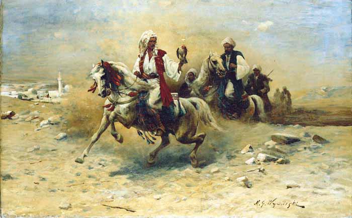 Michał Gorstkin Wywiórski (Warszawa 1861 - Berlin 1926) w latach 1883-1887 studiował w Monachium; w Akademii u profesorów Karla Raupa i Nikolausa Gysisa oraz równolegle w prywatnych pracowniach Józefa Brandta i Alfreda Wierusza-Kowalskiego. W 1884 debiutował na wystawie w krakowskim TPSP, swoje prace pokazywał też w Monachium, gdzie w 1894 na międzynarodowej wystawie w Glaspalast został wyróżniony medalem za obraz Z puszczy litewskiej. W 1895 przeniósł się do Berlina, zaproszony przez Wojciecha Kossaka i Juliana Fałata do pracy przy panoramie Berezyna (1895-1896). W Berlinie zamieszkał na dłużej, a następnie przebywał w Wielkopolsce i w Warszawie. Współpracował też z Janem Styką przy panoramie Bitwa pod Sybinem (1897), a w 1900 wspólnie z Kossakiem podróżował do Hiszpanii i Egiptu, aby wykonać szkice plenerowe do zamierzonych panoram Somosierra (nie zrealizowana) i Bitwa pod piramidami (1901). Wyjeżdżał także na Litwę, wyspę Sylt, do Norwegii, Szwecji, nad Morze Północne i Bałtyk, malował w Amsterdamie, na Krymie i Kaukazie. We wczesnej fazie twórczości, pod silnym wpływem Brandta i Wierusza-Kowalskiego, malował sceny myśliwskie i rodzajowe oraz obrazy z Tatarami, Kozakami czy Czerkiesami, które przyniosły mu powodzenie na monachijskim rynku sztuki. Z czasem naczelnym tematem jego malarstwa stał się czysty pejzaż, postrzegany i malowany wrażliwie i z upodobaniem.