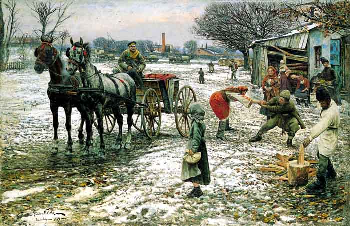 Stanisław Pomian Wolski - malarz i rysownik; studia malarskie rozpoczął u Wojciecha Gersona w warszawskiej Klasie Rysunkowej, a kontynuował je w krakowskiej Szkole Sztuk Pięknych pod kierunkiem Jana Matejki. Dzięki prywatnemu stypendium wyjechał do Monachium i w latach 1883-1885 kształcił się jeszcze w Akademii Sztuk Pięknych oraz w prywatnej pracowni Józefa Brandta. Był artystą bardzo zdolnym, a jego obrazy cieszyły się tak dużą popularnością na monachijskim rynku sztuki, że „zbywał je na stalugach licznym niemieckim Kunsthandlerom”. W 1886 wrócił do Warszawy, gdzie podjął współpracę z „Tygodnikiem Ilustrowanym”. Malował przede wszystkim obrazy o tematach historycznych i batalistycznych - rekonesanse, potyczki, biwaki żołnierskie. Ze szczególnym upodobaniem malował sceny z kampanii napoleońskiej. Tworzył też obrazy rodzajowe - pogodne sceny z warszawskich parków i ulic, wypadki na drogach, polowania i, co ciekawe, sceny cyrkowe.