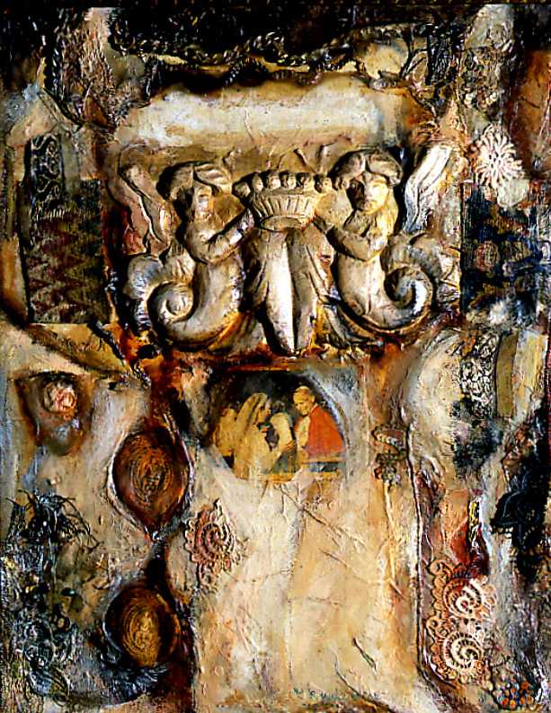 Teresa Rudowicz (Toruń 16 III 1928 - Kraków 1994) studiowała w latach 1948-50 w PWSSP w Gdańsku (z siedzibą w Sopocie), następnie na Wydziale Malarstwa ASP w Krakowie, który ukończyła w 1954, uzyskując dyplom w pracowni Czesława Rzepińskiego. W listopadzie 1956 była w gronie współzałożycieli Stowarzyszenia Artystycznego Grupa Krakowska. Brała udział w większości wystaw Grupy Krakowskiej w kraju i za granicą. W latach 50. malowała i tworzyła litograficzne kompozycje w duchu abstrakcji informel. Od początku lat 60. powstawały najbardziej dla niej charakterystyczne collages, porównywane niekiedy z równoległymi tendencjami malarstwa materii i assemblages. Artystka budowała swe prace z wyraźnym estetycznym upodobaniem dla autentyczności używanych elementów (narażając się nawet na zarzuty części krytyki, że „psuje“ starodruki, oryginalne ryciny czy elementy zdobnicze). Jej prace, częściowo dzięki tej autentyczności, częściowo wskutek zabiegów malarskich, odznaczają się szlachetną, ciepłą patyną. Tworzyła collages do końca życia, z wyłomem we wczesnych latach 80., kiedy to pod wpływem atmosfery stanu wojennego malowała kompozycje religijne („Ukrzyżowania“), prezentowane w obiegu kultury niezależnej.z równoległymi tendencjami malarstwa materii i assemblages. Artystka budowała swe prace z wyraźnym estetycznym upodobaniem dla autentyczności używanych elementów (narażając się nawet na zarzuty części krytyki, że „psuje” starodruki, oryginalne ryciny czy elementy zdobnicze). Jej prace, częściowo dzięki tej autentyczności, częściowo wskutek zabiegów malarskich, odznaczają się szlachetną, ciepłą patyną.