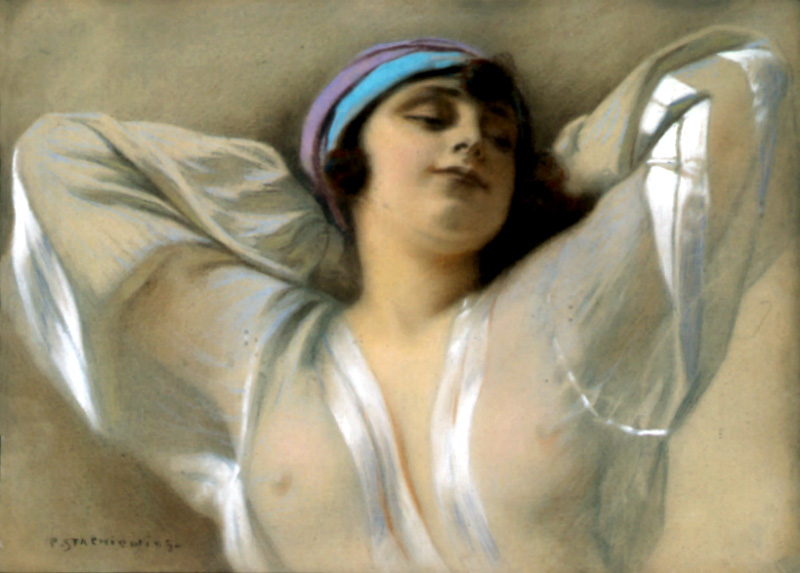 Piotr Stachiewicz (Nowosiółki Gościnne 1858 - Kraków 1938) - malarz i ilustrator. Ukończył Politechnikę lwowską. W latach 1877 - 1883 studiował malarstwo w krakowskiej Szkole Sztuk Pięknych, m.in. u J. Matejki, a w latach 1883 - 1885 w monachijskiej Akademii u O. Seitza. Podróżował do Włoch i Ziemi Świętej. Malował sceny rodzajowe, portrety - m.in. popularne „główki” dziewczęce, oraz obrazy o tematyce religijnej, z których najbardziej znany jest cykl "Legenda o Matce Boskiej" z lat 1892 - 1893. Stworzył serie obrazów malowanych według powieści H. Sienkiewicza i poezji A. Mickiewicza. Zajmował się ilustracją książkową, ilustrując m.in. "Quo vadis?" Sienkiewicza i "Bajki" J.I. Kraszewskiego.