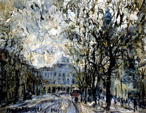Włodzimierz Zakrzewski (Petersburg 1916 - Warszawa 1992) naukę rysunku i malarstwa rozpoczął już w latach gimnazjalnych. Następnie kształcił się w warszawskiej Szkole Sztuk Zdobniczych i Malarstwa pod kierunkiem E. Butrymowicza. W czasie II wojny światowej przebywał w Związku Radzieckim - w latach 1941-1942 uczył się w Moskwie, projektował plakaty i malował obrazy o tematyce wojennej. W roku 1943 wyjeżdżał na Ałtaj. Po wojnie wrócił do kraju; w latach 1950-1952 był profesorem warszawskiej Akademii Sztuk Pięknych. W latach następnych całkowicie poświęcił się malarstwu. Podczas częstych podróży - m.in. do Włoch, Francji, Stanów Zjednoczonych - malował pejzaże i weduty z wielu odwiedzanych miast. Wystawiał dużo, tak w kraju jak i za granicą - w Sofii, Budapeszcie, Dreźnie, Paryżu, Rzymie, Mediolanie - zbierając pochlebne recenzje krytyków. Po wystawie w Paryżu pisano o nim, m.in.: „malarz czuły na materię i barwę wystawia bezpretensjonalne płótna, zadumane, pełne wigoru w fakturze, świadczące o żywej reakcji na światło...“ (cyt. za katalogiem wystawy w warszawskiej Galerii ZPAP w roku 1963).