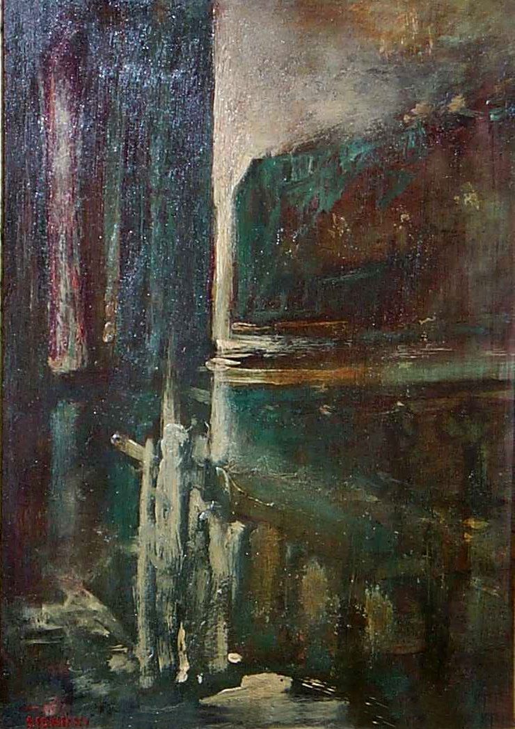 Jacek Sienicki (Warszawa 29 II 1928 - Warszawa 14 XII 2000) studiował na Wydziale Malarstwa ASP w Warszawie, gdzie w 1954 uzyskał dyplom w pracowni prof. Artura Nachta-Samborskiego. W 1955 był uczestnikiem Wystawy Młodej Plastyki w warszawskim Arsenale. Udział w tej manifestacji był nie tylko właściwym debiutem artysty, ale też na lata określił jego postawę, dzieloną z innymi „arsenałowcami“, której zasady to: prymat etyki, sceptycyzm wobec przemijających mód artystycznych, wierność sobie. W 1955 Sienicki podjął pracę pedagogiczną w macierzystej uczelni. Przeszedł wszystkie szczeble akademickie, otrzymując tytuł profesora w 1981. Był laureatem liczących się nagród, m.in. Nagrody Krytyki im. Cypriana Kamila Norwida w 1974, Nagrody im. Jana Cybisa (niezależnej) w 1984, nagrody Fundacji im. Alfreda Jurzykowskiego w 1993. Jego malarstwo od wczesnych lat oscylowało między figuratywizmem o często dramatycznej wymowie egzystencjalnej i skłonnością do abstrakcji. Przy tym malarz nie opuszczał dość ograniczonego zestawu ulubionych motywów, do których należały: czaszki końskie, wydłużone postaci, ciemne wnętrza, które rozgrywał w podobnej, ciemno-zimnej gamie barwnej. Równolegle do malarstwa wiele rysował, zazwyczaj węglem, traktując prace w tej technice jako autonomiczne dzieła.