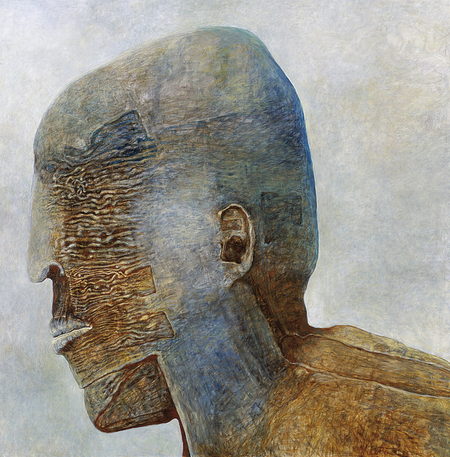 Zdzisław Beksiński (Sanok 24 II 1929 - Warszawa 21 II 2005) studiował w latach 1947-1952 na Wydziale Architektury Politechniki Krakowskiej. Był artystą samoukiem, który osiągnął niekwestionowaną pozycję w polskiej sztuce współczesnej, potwierdzoną obecnością jego prac na prestiżowych wystawach i w kolekcjach muzealnych. Początkowo zajmował się fotografią, którą interesował się od lat studenckich, po 1956 zyskując uznanie jako twórca fotogramów o estetyce opartej o efekty fakturowe. W latach 1958-1962 tworzył abstrakcyjne obrazy-reliefy o bogatej fakturze, głównie metalowe, będące odmianą malarstwa materii. Pod koniec tego okresu powstawały ażurowe formy o kształtach figur i pełnoplastyczne rzeźby w metalu. Kolejnym etapem jego twórczości były lata 1962-1974, kiedy poświęcał się głównie rysunkowi. W latach 60. rysował piórkiem i tuszem figuralne kompozycje odznaczające się karykaturalną deformacją postaci. Od końca lat 60. tworzył rysunki węglem i kredkami, będące monochromatyczną odmianą jego równoległej twórczości malarskiej. Od 1974 zajmował się niemal niepodzielnie malarstwem. Jego charakterystyczny styl bazował na perfekcji technicznej, której towarzyszyła niezwykłość wizji. Malował świat po katastrofie, naznaczony piętnem śmierci i rozpadu. Jego obrazy zaludniają postaci i stwory o ludzkich wprawdzie bądź zwierzęcych kształtach, lecz o cechach fantomów, automatów lub rozpadających się trucheł. Artysta nie nadawał swym obrazom i rysunkom tytułów (poza porządkującymi symbolami), akcentując w ten sposób swój brak zainteresowania dla literackiej strony przedstawień. Sam mówił, że malując całkowicie poddaje się wizji, „fotografuje“ ją. W ostatnich latach włączył do swego warsztatu artystycznego elektroniczne techniki generowania obrazu, które wykorzystywał do tworzenia komputerowych fotomontaży. Sztuka Beksińskiego, wielokrotnie wystawiana i omawiana, budzi skrajne emocje wśród znawców i publiczności.