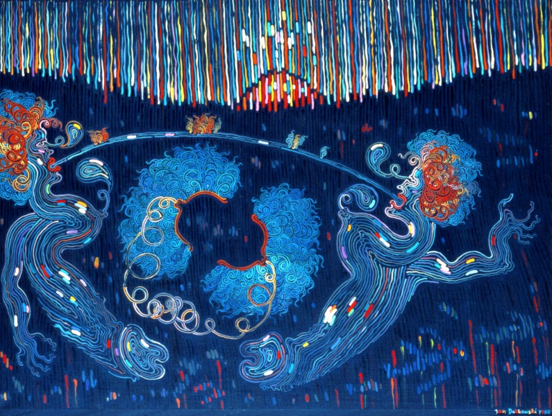 Jan Dobkowski (Łomża 1942, mieszka w Warszawie) studiował w latach 1962-1968 na Wydziale Malarstwa warszawskiej ASP pod kierunkiem prof. Juliusza Studnickiego i Jana Cybisa. Będąc jeszcze na studiach, w 1966, utworzył duet artystyczny, w którym jego partnerem był Jerzy (Jurry) Zieliński. Ich pierwsza wspólna wystawa pn. Neo-Neo-Neo odbyła się w Warszawie w 1967. Wystawiali wspólnie do 1970. W 1968 powstały pierwsze zielono-czerwone obrazy Dobkowskiego (używającego w tym czasie pseudonimu Dobson). W pracach tych, operujących giętkimi, falistymi liniami, w których upatrywano wpływów secesji, artysta używał sposobów rodem z op-artu dla wywołania złudzeń optycznych (wirowanie, mżenie, pozorny ruch form). Równolegle z obrazami tworzył też formy z płyt i folii do montowania w przestrzeni. Złoty medal na Sympozjum Złotego Grona w Zielonej Górze w 1971 i blisko roczny pobyt w USA na stypendium Fundacji Kościuszkowskiej w 1972 to kolejne etapy pełnej sukcesów kariery malarza. Wyraźną zmianę nastroju i wymowy jego prac przyniosły wydarzenia 1980-1981 roku, zwłaszcza wprowadzenie stanu wojennego. Monochromatyczne, ciemne płótna znaczył wtedy nikłymi, wiotkimi liniami rysunku. Najczęstszym motywem były patriotyczne i religijne symbole, dopowiadane tytułami nawiązującymi do realiów czasu. Kolejna radykalna zmiana nastąpiła ok. 1990. Symbolicznym zwiastunem nowego okresu stał się olbrzymi, radosny, eksplodujący bogactwem barw, kształtów i ruchu obraz ...a życie sobie płynie... (394 x 588 cm) z 1990-1991. Podobne cechy formalne charakteryzują twórczość artysty w całej dekadzie lat 90. Równolegle z malarstwem Dobkowski pracuje nad rysunkiem, będącym bardzo ważnym dopełnieniem jego twórczości.