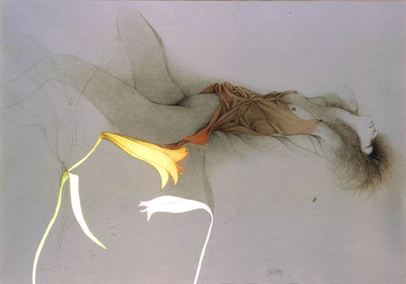 Akt leżący z liliami