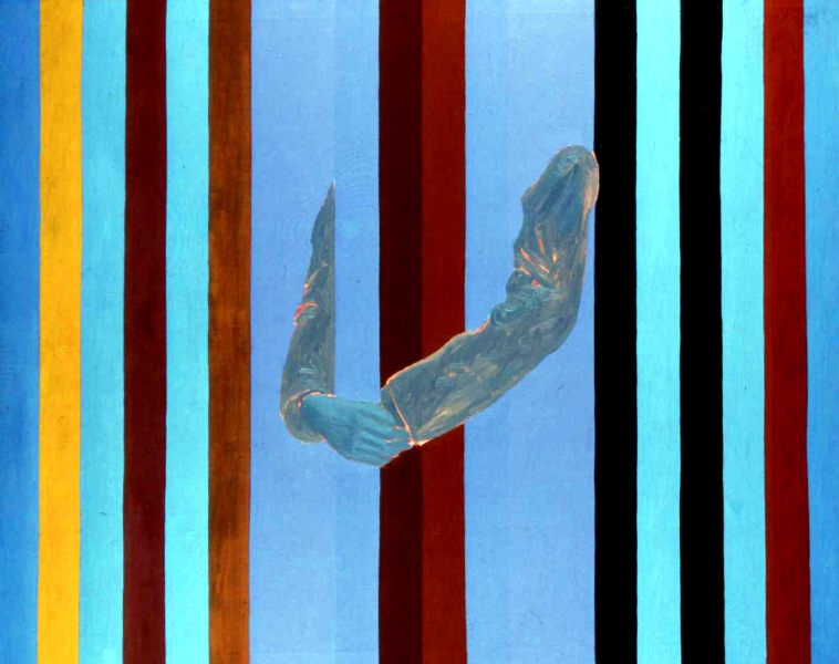 Jarosław Modzelewski (Warszawa 1955, mieszka w Warszawie) studiował malarstwo w ASP w Warszawie w latach 1975-1980, uzyskując dyplom w pracowni Stefana Gierowskiego. Od 1982 pracuje jako pedagog na macierzystym wydziale. W 1982 był współzałożycielem „Gruppy”, najważniejszego ugrupowania nurtu nowej ekspresji lat 80., działającego do 1992. W latach 1991-1996 wspólnie z Markiem Sobczykiem prowadził prywatną Szkołę Sztuki w Warszawie. Od wielu lat współpracuje z Galerią Zderzak w Krakowie. W początkowym okresie twórczości skłaniał się ku abstrakcji, wykorzystywał uproszczone znaki i emblematy oraz sylwetki odbite z szablonu. W 1985 namalował cykl oparty na ilustracjach do podręczników języka rosyjskiego, obrazujący proste czynności, których czasownikowe określenia stanowią tytuły prac. W 1986-1989 powstawały obrazy utrzymane w konwencji realistycznej, jednak zarazem o surrealnej atmosferze uzyskiwanej różnymi metodami, np. przez dublowanie figur, ukazywanie postaci w sytuacji niepewności czy zagrożenia, zabiegi z przestrzenią. W grupie obrazów z 1988 artysta rezygnuje z postaci ludzkiej na rzecz wyjątkowego nasycenia emocją samej przestrzeni pejzaży i wnętrz. Około 1990 wraca do kompozycji akcentujących czynności wykonywane przez postaci, które często umieszczone są w pustej, zaledwie zasugerowanej, acz dominującej przestrzeni. Odrealnienia i monumentalności dodaje tym obrazom płaskie i rozległe kładzenie koloru.