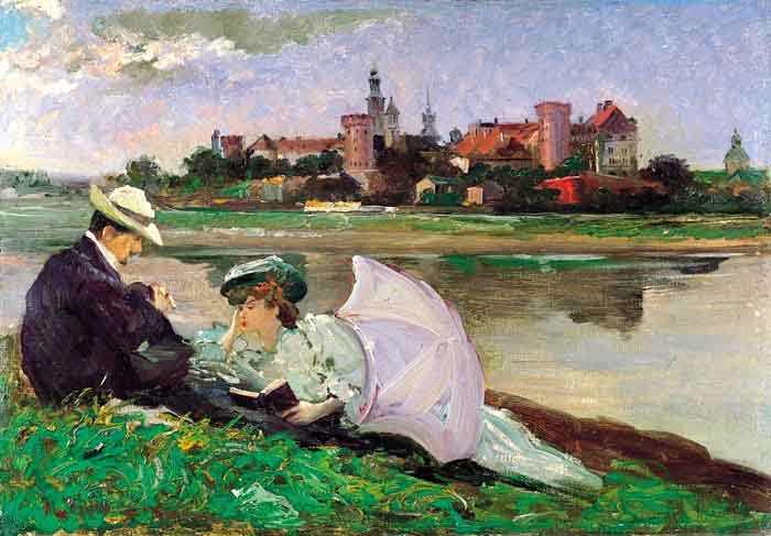 Maurycy Trębacz w okresie przełomu XIX i XX wieku był jednym z najpopularniejszych malarzy żydowskich. Kształcił się u Wojciecha Gersona i Antoniego Kamińskiego w warszawskiej Klasie Rysunkowej, oraz Władysława Łuszczkiewicza i Jana Matejki w krakowskiej Szkole Sztuk Pięknych. Następnie, od 1883 studiował w Akademii w Monachium pod kierunkiem Aleksandra Wagnera i Otto Seitza, a w l. 1889-1890 w paryskiej Académie Colarossi. Studia ukończył ze srebrnym medalem. Swoje obrazy wystawiał od roku 1884, odnosząc sukcesy na wystawach w kraju i za granicą - w Monachium, Paryżu (1889 - brązowy medal), w Chicago (1894 - złoty medal). W 1894 osiadł w Warszawie, skąd w 1909 przeniósł się na stałe do Łodzi, gdzie aż do roku 1939 prowadził własną szkołę malarską. Malował sceny rodzajowe, obrazy o tematyce żydowskiej, pejzaże i liczne portrety. Twórczość artysty przypomniała ostatnio duża wystawa jego prac zorganizowana w Żydowskim Instytucie Historycznym w Warszawie i Muzeum Historii Miasta Łodzi.