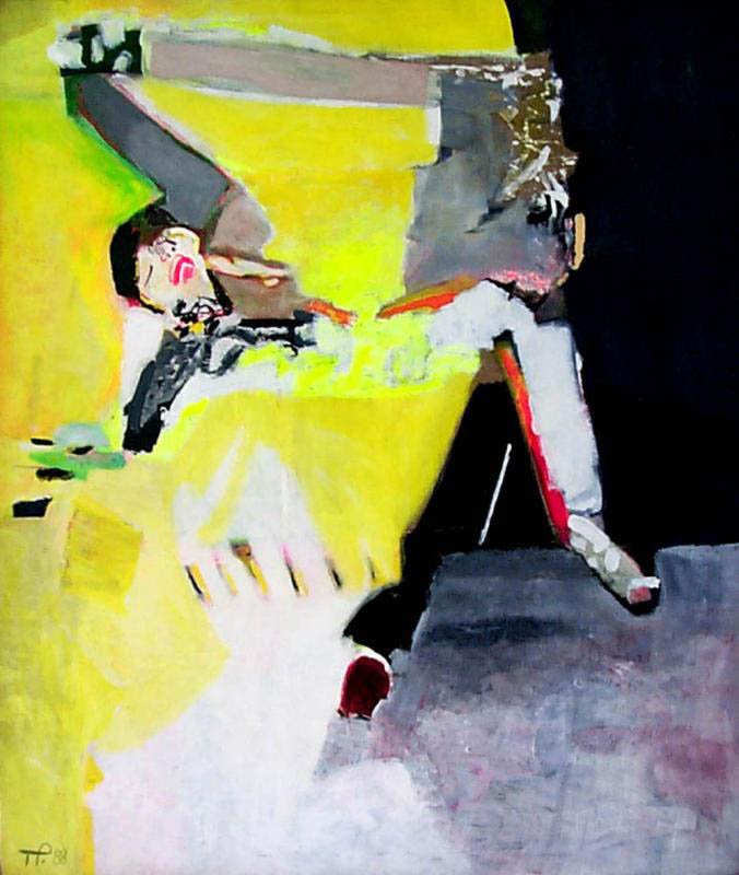 Teresa Pągowska (Warszawa 12 VI 1926 - Warszawa 7 II 2007) studiowała malarstwo i techniki ścienne w PWSSP w Poznaniu w pracowni Wacława Taranczewskiego, gdzie uzyskała dyplom w 1951. W latach 1950-1964 pracowała w PWSSP w Gdańsku. Uczestniczyła w restauracji gdańskiej Starówki (1953). W 1958 wywarły na nią wpływ malarstwo i osobowość Piotra Potworowskiego. W 1964 przeniosła się do Warszawy. W latach 1971-1973 była zatrudniona w PWSSP w Łodzi, od 1973 pracowała w ASP w Warszawie. W 1988 uzyskała tytuł profesora zwyczajnego. Wystawiała od lat 50., uczestnicząc m.in. w wystawie w Arsenale w 1955, w Biennale Młodych w Paryżu 1959. W 1963 udział w wystawie „Ecole de Paris“ w Galerie Charpentier przyniósł jej honorowe członkostwo Nouvelle Ecole de Paris i grupy Realités Nouvelles. W latach 1963-1966 wystawiała na Salon de Mai w Paryżu. W 1990 otrzymała Nagrodę Fundacji im. Jurzykowskiego. Wiele podróżowała, zwiedzała, uczestniczyła w życiu artystycznym, unikając jednak wiązania się z grupami artystycznymi. Od początku twórczości, mimo dalekich niekiedy, ekspresyjnych odkształceń, pozostawała wierna figuracji. Malowała cyklami: „Dni” (lata 60.), „Monochromaty” (do 1975), „Figury magiczne” (kontynuacja poprzedniego cyklu w kolorze). Do 1995 preferowała duże formaty, w których często wykorzystywała efekt niegruntowanego płótna. Równolegle powstawały małe studia pojedynczych przedmiotów i znaków. W 1996 wyszedł monograficzny album artystki.
