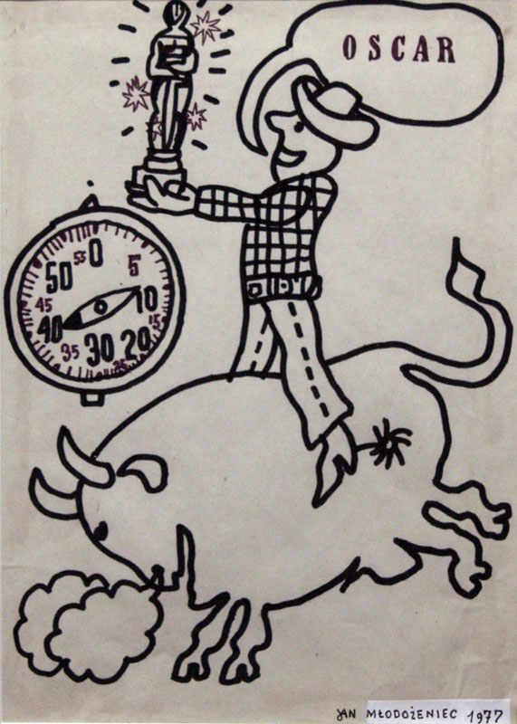 Jan Młodożeniec (Warszawa 1929 - Warszawa 2000) - projektant graficzny i malarz, autor plakatów, okładek książkowych, ilustracji, rysunków. W latach 1948-55 studiował grafikę i plakat w Wyższej Szkole Sztuk Plastycznych w Warszawie w pracowni prof. Henryka Tomaszewskiego, u którego uzyskał dyplom. Współpracował jako grafik z Centralą Wynajmu Filmów, Polfilmem, Biurem Wydawniczym "Ruch", WAG-iem, KAW-em, wieloma teatrami w Warszawie, wydawnictwami Czytelnik, Iskry, PIW, WAiF, Wydawnictwem Literackim oraz czasopismami: "Nowa Kultura", "Współczesność", "Ekran", "Film", "Miesięcznik Literacki", "Polska", "Szpilki". Jan Młodożeniec był przede wszystkim grafikiem użytkowym, po ukończeniu studiów zajął się plakatem, który stał się dla niego główną formą wypowiedzi artystycznej. Do najważniejszych w jego twórczości należały plakaty filmowe (m.in. "Dawno temu w Ameryce", "Ojciec chrzestny", "Wielki Gatsby"), teatralne (m.in. do sztuk Czechowa, Fredry, Wyspiańskiego) i reklamowe. Pierwszy plakat pochodził z 1951 roku i był obrazem do historycznego filmu "Praga 1848". Od połowy lat 50. Młodożeniec stał się jednym z najbardziej cenionych twórców plakatu i grafiki książkowej.