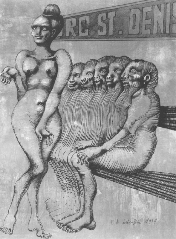 Jan Lebenstein (Brześć Litewski 1930 - Kraków 1999) w latach 1948-1954 studiował malarstwo w ASP w Warszawie pod kierunkiem prof. Eugeniusza Eibischa i Artura Nachta-Samborskiego. W 1955 wziął udział w wystawie w warszawskim Arsenale. Zaprzyjaźniony w czasie studiów z Mironem Białoszewskim, swą pierwszą wystawę indywidualną pokazał w 1956 w Teatrze na Tarczyńskiej. W 1959 zdobył Grand Prix de la Ville de Paris na I Biennale Młodych w Paryżu i w tym roku przeniósł się na stałe do Paryża. Po seriach "figur kreślonych" (na papierze milimetrowym) i "figur hieratycznych" z lat 1955-1958 maluje cykl "figur osiowych" (1958-1962), które wystawia w Paryżu i USA. Równolegle w 1960 zaczyna rysowane "karnety", rodzaj dziennika, który w przyszłości dostarczy motywów wykorzystanych w obrazach. W latach 1964-1965 maluje "Bestiarium", cykl fakturowych, archaizowanych stworów przypominających prehistoryczne wykopaliska. Bezpośrednio po nich wprowadza do swych obrazów postaci ludzkie i fantastyczne, odgrywające sceny ni to mitologiczne, ni to ze snu, często przesycone erotyką. W 1970 projektuje witraże dla Centre du Dialogue w Paryżu. W W 1971 otrzymuje obywatelstwo francuskie 1974 powstają gwasze inspirowane Folwarkiem zwierzęcym George'a Orwella. W latach 1976-1989 tworzy wyłącznie w technice gwaszu i pastelu, podejmując tematykę mitologiczną i zaczerpniętą z Biblii: cykle ilustracji do Księgi Hioba (wyd. 1979) i do Apokalipsy (wyd. 1986) w nowych przekładach Czesława Miłosza. W 1989 powraca do malarstwa olejnego (cykl "Pergamon"). Artysta otrzymał m. in. nagrodę Fundacji im. Alfreda Jurzykowskiego w 1976, Nagrodę Muzeum Archidiecezji Warszawskiej w 1985, Nagrodę im. Jana Cybisa w 1987.