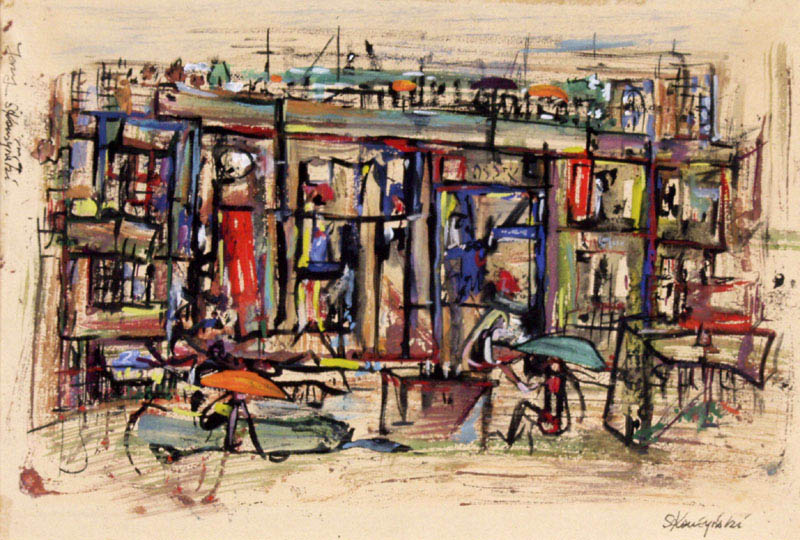 Jerzy Skarżyński (Kraków 16 XI 1924 – Kraków 7 I 2004) studiował w latach 1940-1942 w krakowskiej Kunstgewerbeschule, a po wojnie na Wydziale Architektury Politechniki Krakowskiej, uczęszczając jednocześnie na zajęcia w ASP. Zajmował się malarstwem, rysunkiem, ilustracją książkową, ale przede wszystkim scenografią teatralna i filmową. Jako scenograf współpracował ze swoją żoną Lidia Minticz-Skarżyńską Był współzałożycielem Grupy Młodych Plastyków(1942-1947), Klubu Artystów (1948-1949) i 2 Grupy Krakowskiej (1957) W czasie wojny współpracował z Tadeuszem Kantorem w jego Teatrze Podziemnym. W latach 1947-1948 prowadził w Krakowie klub jazzowy. W latach 1959-1959 pracował w Teatrze Lalki i Maski „Groteska” w Krakowie. Wspólnie z żoną przygotowali m.in. „Szewca Dratewkę” Marii Kownackiej w reżyserii Leokadii Serafinowicz (1952), „Igraszki z diabłem” Jana Drdy w inscenizacji Władysława Jaremy (1952), a także widowisko oparte na tekstach K.I. Gałczyńskiego w reżyserii Jaremy (1955). W latach 1958-1990 pracował dla Starego Teatru w Krakowie (m.in. "Indyk, Kaligula", "Opera za trzy grosze", "Tango", "Proces", "Hamlet", "Oresteja", "Diabły z Loudun"), dla innych teatrów w kraju i za granicą oraz do filmów ("Sanatorium Pod Klepsydrą", "Pamiętnik znaleziony w Saragossie", "Lalka", "Historia żółtej ciżemki"). Wspólnie z żoną projektowali też scenografię do przedstawień operowych, m.in. do K. Pendereckiego (Hamburg, 1969), "Balu maskowego" G. Verdiego (Warszawa, 1977). Prace malarskie Skarżyńskiego wyrosły z ducha surrealizmu. Postać ludzka stając się przedmiotem zyskała metaforyczny sens. Jego kompozycje kojarzą się z malarstwem Rene Magritte’a, Giorgia de Chirico, Maxa Ernsta.