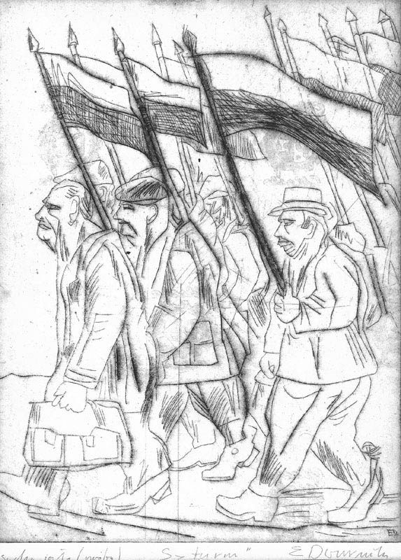 Edward Dwurnik (Radzymin 19 IV 1943 - Warszawa 28 X 2018) studiował malarstwo w ASP w Warszawie (1963-1970), jednak jako swego „mistrza“ wymienia Nikifora. Jego to prace, zobaczone po raz pierwszy w 1965, zainspirowały ówczesnego studenta III roku do narysowania pierwszych prac z cyklu „Podróże autostopem“, które kontynuował w nastepnych latach. W 1972-1978 powstawał cykl „Sportowcy“, w którym portretowane były, dodajmy - kąśliwie, typowe postaci z lat 70. Równolegle od 1975 powstawał cykl „Robotnicy“, który kulminował w okresie „Solidarności“ 1980-1981. Za prace z tego cyklu Dwurnik otrzymał w 1981 Nagrodę Krytyki Artystycznej im. Cypriana Kamila Norwida, natomiast za obrazy z cyklu „Warszawa“ (1981), proroczo zapowiadające stan wojenny - Nagrodę Kulturalną „Solidarności“ podziemnej w 1983. W latach 80. malarstwo Dwurnika przybrało wyraz ekspresyjny i dramatyczny. Powstające w tej dekadzie obrazy miały niejednokrotnie wymowę polityczną, przybierały też kostium historyczny, tak czy inaczej odnoszący się do współczesnych spraw i realiów. Cykl „Droga na Wschód“ (1989-91) upamiętniał ofiary stalinizmu, natomiast cykl „Od Grudnia do Czerwca“ (1990-94) - ofiary stanu wojennego. Zarówno ideowe, jak i czysto malarskie walory tych prac przyniosły artyście ogromne uznanie, zarówno w kraju jak i za granicą. Jego wyrazem była prestiżowa nagroda Fundacji Coutts & Co w Zurychu (1992). W latach 90. powstają cykle będące kontynuacją „Podróży autostopem“: „Niebieskie miasta“ (od 1993) i „Diagonale“ (od 1996), jak również kompozycje nowego typu, jak widoki morskie (cykl „Błękitne“, 1992-93) czy cykl „Wyliczanka“ (1996-99). Artysta wiele wystawia, miał ok. 100 wystaw indywidualnych w Polsce i za granicą, brał też udział w licznych wystawach i festiwalach krajowych i międzynarodowych, m.in.: X Biennale Sztuki Współczesnej, Menton 1974, Documenta 7, Kassel 1982, 5th Biennale, Sydney 1985, XIX Biennale Sztuki, Sao Paulo 1987; Olimpiada Sztuki, Seul 1988. Równolegle z malarstwem uprawiał rysunek, collage, grafikę warsztatową (litografia, techniki metalowe, kserografia, stemple) i użytkową (ilustracja, plakaty do własnych wystaw indywidualnych).