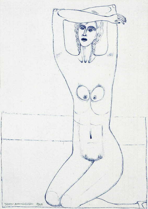 Jerzy Nowosielski (Kraków 1923 - Kraków 2011) w 1940 zaczął studia w Kunstgewerbeschule w Krakowie. W 1942 przebywał przez niecały rok w Ławrze św. Jana Chrzciciela pod Lwowem. Studiował tam sztukę malowania i historię ikon. Po powrocie do Krakowa w 1943 nawiązał ponowne kontakty z kręgiem przyszłej Grupy Krakowskiej. Po wojnie kontynuował studia w ASP w Krakowie pod kierunkiem prof. Eugeniusza Eibischa (1945-1947). Na I Wystawie Sztuki Nowoczesnej w Krakowie w 1948/49 pokazał obrazy utrzymane w nurcie abstrakcji geometrycznej. W latach socrealizmu nie wystawiał, zajmując się w tym czasie scenografią oraz malowaniem cerkwi i kościołów. W 1955 w Łodzi zaprezentował swą pierwszą wystawę indywidualną, w 1956 wziął udział w XXVIII Biennale w Wenecji. W latach 1957-1962 był pedagogiem w Państwowej Wyższej Szkole Sztuk Plastycznych w Łodzi, następnie w Akademii krakowskiej, gdzie wykładał na Wydziale Malarstwa do przejścia na emeryturę w 1993. W drugiej połowie lat 50. osiągnął charakterystyczny styl aktów, pejzaży i scen figuralnych we wnętrzach, który zawdzięczał swej fascynacji ikoną i doświadczeniom z malarstwem sakralnym. W 1976 podjął na nowo realizacje monumentalne, wykonując m.in. malowidła ścienne, stacje Drogi Krzyżowej i projekty witraży w kościele Opatrzności Bożej w Wesołej pod Warszawą (1976-1979). Artysta powszechnie uznawany był za autorytet w dziedzinie sztuki zakorzenionej w wartościach duchowych.