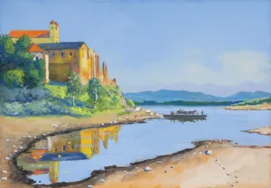 ołówek, akwarela, gwasz, papier naklejony na karton