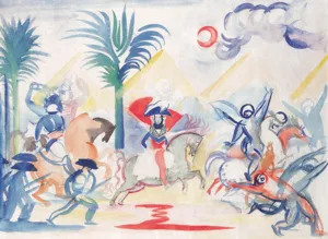 gwasz, tusz pióro, pędzel, papier z fakturą płótna